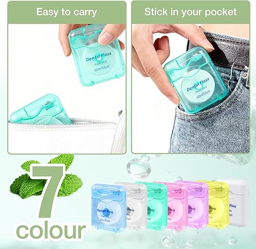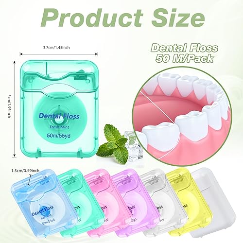 Dental Floss Bulk: bulk floss includes 70 individual boxes of refreshing mint dental floss. Every unit contains a full 55yd (50m) spool designed to provide extended daily use. With its compact size measuring just 2.2 x 1.7 x 0.7 inches per box, regular floss is perfectly suited for both travel convenience and compact storage solutions.