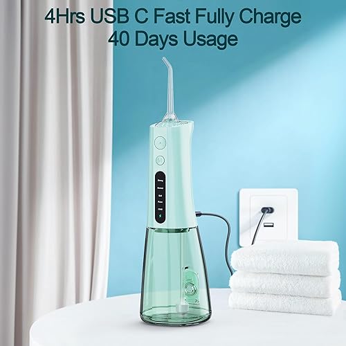 【40 Days Long Usage&Powerful Battery Life】MOCEL Cordless water dentel flosser is powerful and the Powerful battery takes 4 hours to fully charge and lasts 40 days of continuous use. The cordless design makes it easy to use at home and on the go, Note: The charging adapter is not included, But the dental floss equipped with USB C cable is ideal for home, travel, office or business trips
