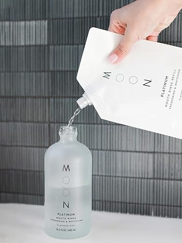 Stock Up on Refills - Our Platinum Whitening Mouth Rinse is sold in a sustainable glass bottle so you can elevate your countertop while reducing landfill waste. When you're ready to replenish your stash, we offer PCR refill pouches so you can easily top off your bottle.