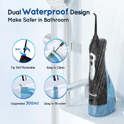 Long-lasting Battery Life & Waterproof Design: The water flosser cordless features a powerful battery that charges in just 3 hours, providing up to 50 days of continuous use. The included USB cable allows for charging via power banks, computers, or laptops. With an IPX7 waterproof rating and double-sealing rings, this water floss is safe to use in the shower without worry of leaks.