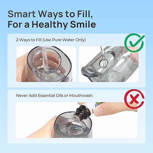 Please observe these precautions for optimal use of your water flosser: Avoid essential oils to prevent clogging, internal damage, and corrosion of the water main board; partially close your mouth during use to minimize splashing; and always ensure the charging port cover is fully sealed to maintain water resistance and avoid charging malfunctions or reduced charging speed