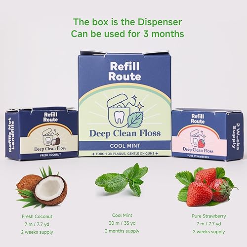 Choose from 3 Delicious, Non-Irritating Flavours! Cool Mint (32 yds), Fresh Coconut (7 yds), and Pure Strawberry (7 yds). Our Woven Dental Floss includes 1 official and 2 trial sizes, perfect for trying out different flavours!