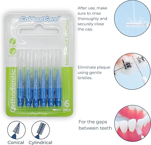 Dual Interdental Brush Design: Our set includes three conical and three cylindrical interdental brushes, providing versatile options for effective cleaning between your teeth and the gum line. Achieve thorough plaque removal and maintain optimal oral health with ease.