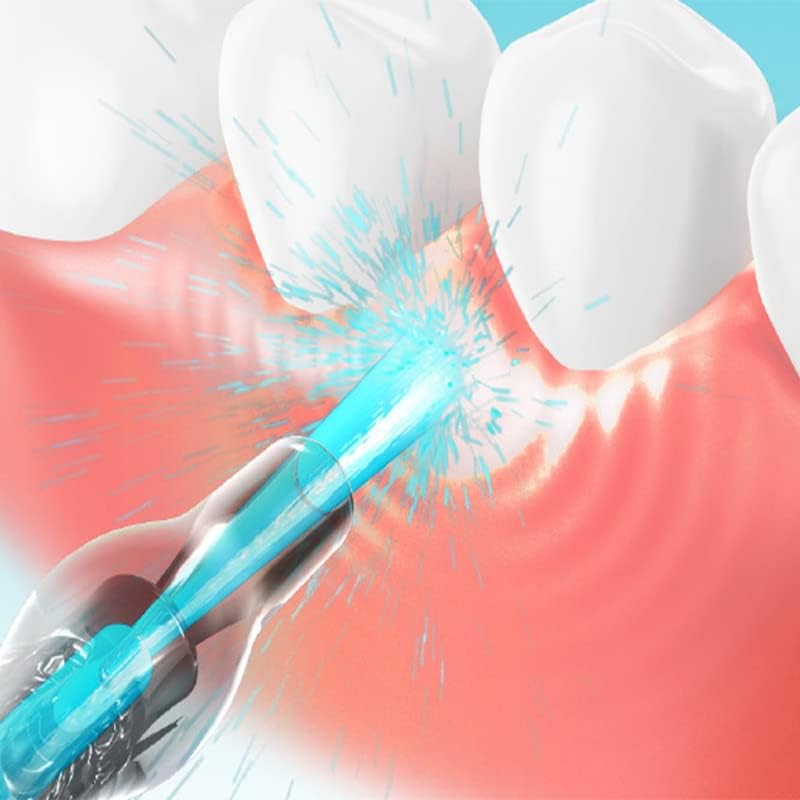 Removes plaque easily. removes up to 99.9% of plaque from the treated area in 3 seconds. Great for those who have trouble flossing, picking, or interdental brushes.
