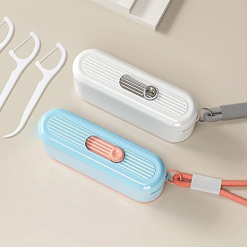 【Mirror Design】 The white dental floss picks holder come with mirror design, which can easily see the condition of teeth and clean up food residue more conveniently. The mirror can also be used for touch-ups. Blue dental floss pick holder don't have mirror