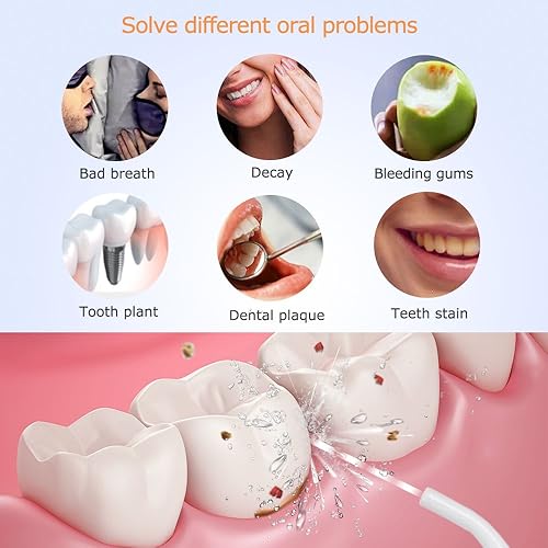 【Your Oral Care Specialist】 Professional cordless water flosser is designed with 360° rotatable nozzle . The oral irrigator can easy access to your entire mouth to clean teeth deeply and clean every corner precisely that traditional brush head can not reach.With 3 deep clean 4 different Interchangeable Jet tips modes, portable water flosser helps you powerful cleaning 99.99% food debris and plaque