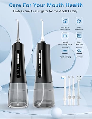 [WATER FLOSSER] Our portable and chordless watter teeth flosser is compact and efficient with multiple pressure modes to help you get a optimal clean mouth and clean your teeth or dentures from any food and bacterial particles.