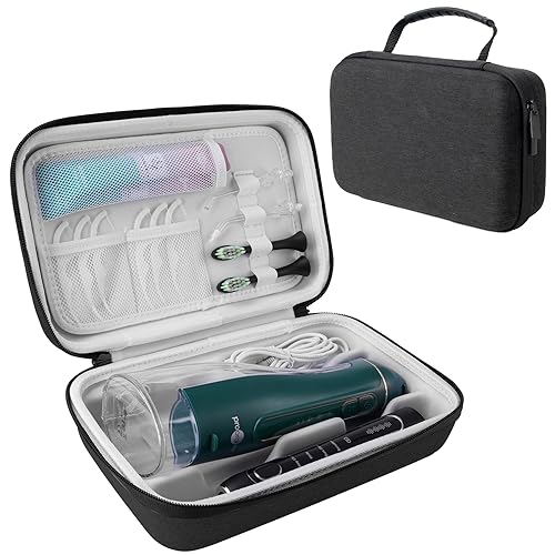 【Travel-Ready】: 10"*6.5"*2.9", easy to carry. This water flosser case is lightweight and comes with a carry handle, making it easy to take with you on the go, perfect for travelling, camping or storing your water flosser when not use