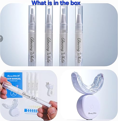 Product Benefits: Advanced Whitening Technology: Harness the power of dental-grade ingredients and a 32-LED light system for full-coverage whitening. This state-of-the-art kit offers rapid results, delivering a radiant smile in just 7 days while protecting your teeth and gums., Family-Friendly Design: Comes with a medical-grade silicone mouth tray, suitable for multiple users—ideal for adults, and seniors alike. Portable : Enjoy professional-grade whitening wherever you are—at home, at work, or on the go. It is sleek and compact design., Pain-Free Whitening: Includes four 35% carbamide peroxide gel pens specially formulated to minimize sensitivity and protect enamel., Precision Application: Each pen features a soft brush tip for effortless, accurate application., Safe and Gentle: Designed with non-sensitive components, this kit ensures effective whitening without discomfort, making it perfect for achieving professional results at home., Save Time and Money: Skip expensive dental visits and embrace a hassle-free solution tailored for your busy lifestyle. See more