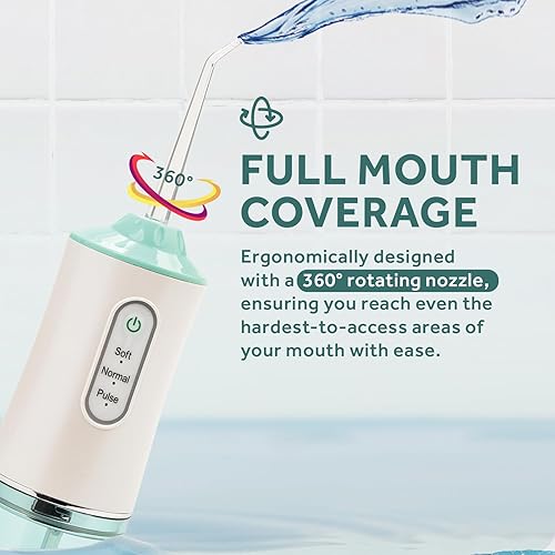 360° Rotating Nozzle: Easily target all areas of the mouth with the ergonomically designed handle and rotating nozzle, perfect for getting to those hard-to-reach spots.