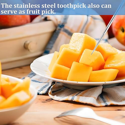 【Unique design】The bottom of the toothpick features a round hook, convenient to carry for travel, camping, picnic and some other activities. Anti-slip handles can increase the stability in operation and easy to use.