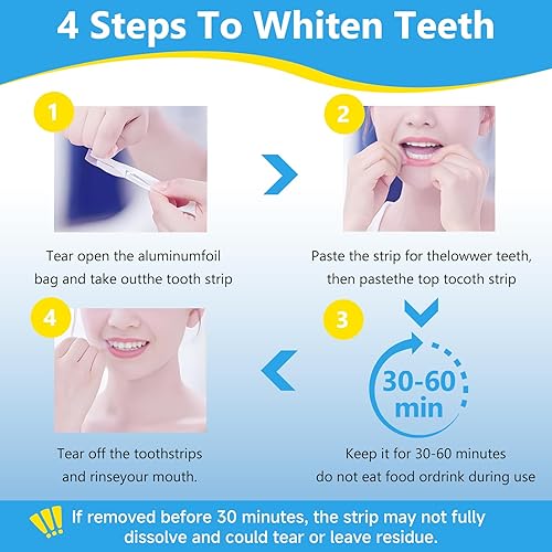 Teeth Whitening Strips: Effectively remove stubborn stains and yellowing to restore your teeth's natural brightness. Featuring an upgraded ultra-thin design for a snug, comfortable fit. For optimal results, wear for at least 30 minutes; shorter wear times may prevent the strips from fully dissolving, potentially causing breakage or residue.