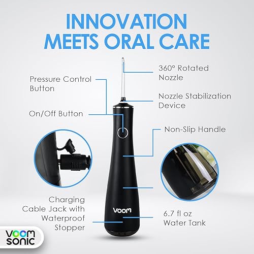 Large Capacity Water Reservoir: (7 FL OZ) The Voom Sonic Monsoon has a Large Capacity water reservoir & is enough for a 60-second full mouth clean. No need to refill or pour out the remaining water, the Monsoon can run continuously for over 10 minutes before needing a recharge!