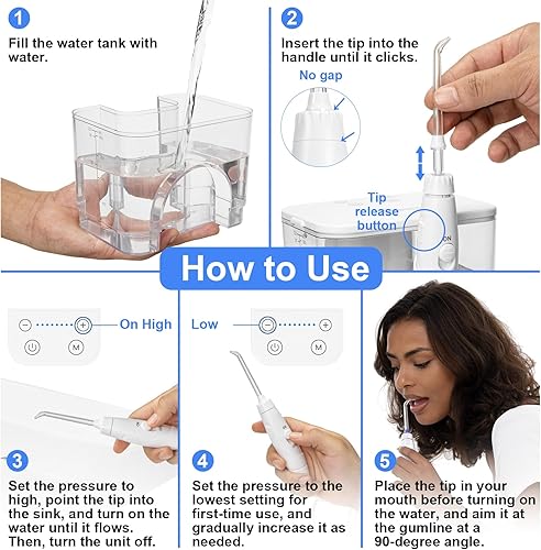 【Portable Design with Long Battery Life】Compact and rechargeable, the JUSDOO Water Dental Flosser is perfect for travel or daily use. With a large 950ml water reservoir, you can enjoy extended cleaning sessions without frequent refills. One full charge provides up to 60 uses (90 seconds each), making it an ideal companion for your oral care routine on the go